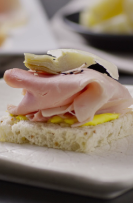 - Salatele appena, servitele calde farcite con la ricotta alle erbe e le fette di culatta Madame.