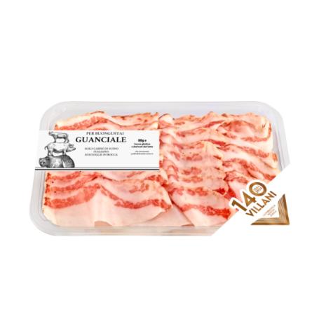 Guanciale di suino italiano di filiera. Un prodotto d’eccezione, dolce e scioglievole, dal sapore unico grazie alla lunga stagionatura. Ottimo sia come salume da accompagnare con pane, sia come pregiato ingrediente per piatti gustosi e raffinati. Per buongustai.